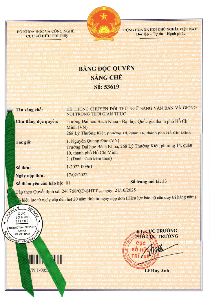 Mr. Nguyen Quang Duc officially became the first member of the URA research group to be granted an exclusive patent by the Vietnam Intellectual Property Office, recognizing his invention titled “Real-time Sign Language-to-Text and Speech Conversion System”.
